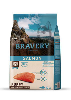 הפורמולה של Bravery מבוססת על סלמון איכותי, המספק חלבון קל לעיכול התורם להתפתחות תקינה של שרירים, עצמות ומערכת החיסון של הגור. סלמון עשיר גם באומגה 3 ואומגה 6, התומכות בהתפתחות מוחית, עור בריא ופרווה מבריקה.