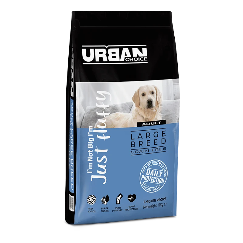 URBAN CHOICE LARGE BREED – מזון יבש, מלא, עשיר ומאוזן לכלבים אורבניים בוגרים מגזע גדול על בסיס עוף. בטבע הם ציידים, אבל כלבי העיר צדים לרוב ביןהמיטה לספה. למרות זאת, הם עדיין חשופים לנזקי העיר: רעש המוביל לסטרס, זיהומים אשר פוגעים בבריאות ומראה העור והפרווה, משקל עודף… URBAN CHOICE מותאם לאורח החיים האורבני ומבין את הצרכים של חיית המחמד שלך בקצב החיים המסחרר של העיר הגדולה. נוסחת ה- Daily Protection מכילה את שלושת עקרונות היסוד לתזונה אורבנית בריאה עבור הכלב שלכם.•SAFE WEIGHT: תורם לשמירה על משקל תקין באמצעות יחס מאוזן בין חלבון, שומן ופחמימות.• CALMING: מכיל רכיביםייחודיים כגון קמומיל, פסיפלורה, וחיידקים פרו-ביוטיים לשמירה על תחושת הרוגע.• DELICATE PAWS: מסייע בשמירה על כפות הרגליים מפני שחיקה באמצעות שילוב ייחודי של 150 מ"ג/ק"ג אבץ