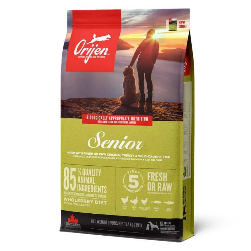 מזון יבש מלא לכלבים מכל הגזעים מגיל 7 שנים.אוריג'ן סניור שופע כל טוב ומכיל עוף והודו מגידולי חופש, ביצי קן ודגי אגמים ואוקיינוס טריים, המסייעיםלשמירה על מסת שריר רזה ולבריאות מיטבית של כלבי סניור מכל הגזעים. מזון אוריג'ן עטור הפרסים, המיוצר במטבחינו מהרכיבים הטובים והטריים ביותר בקנדה,מבטיח שכלב הסניור שלכם יהיה מאושר, בריא וחזק.