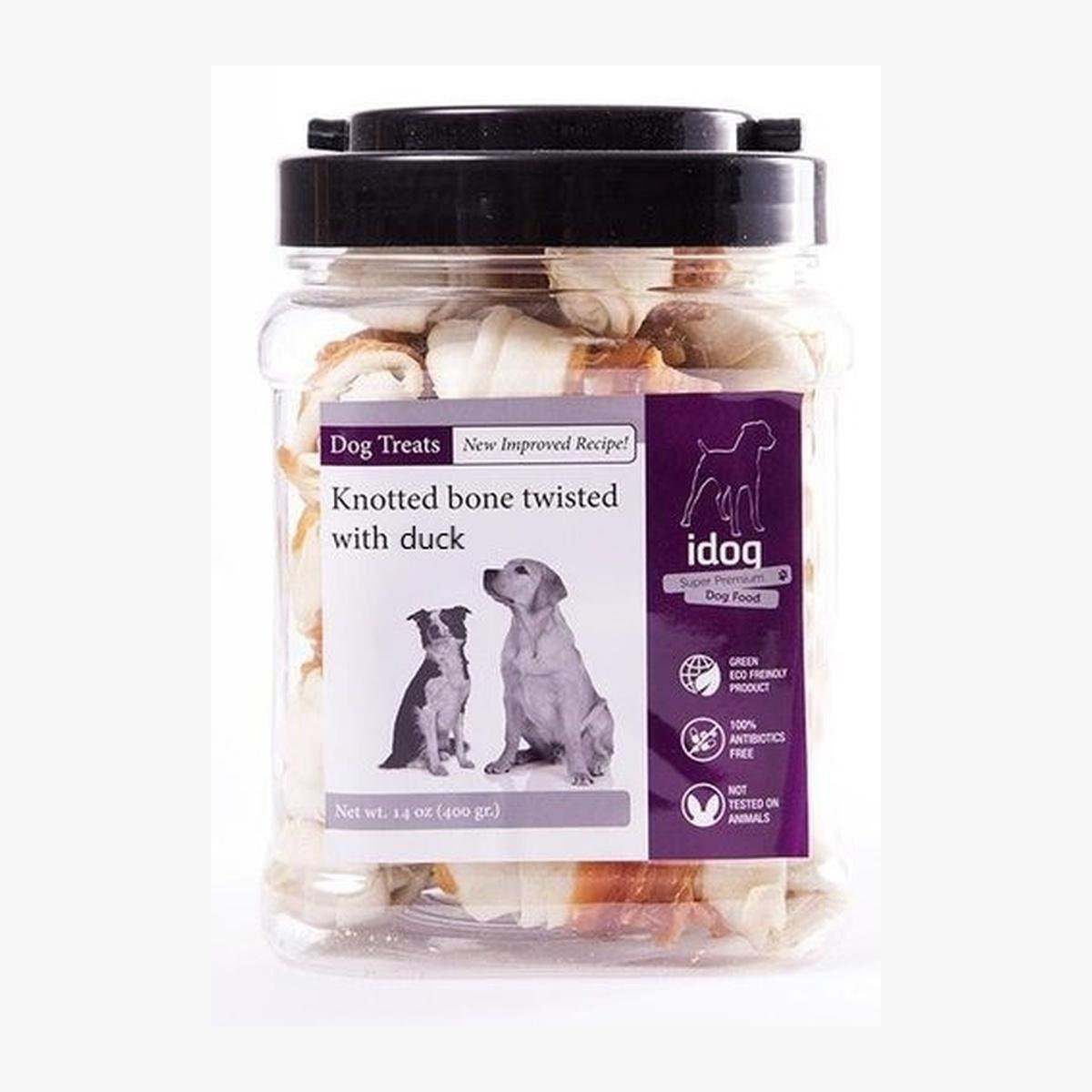 איי דוג צנצנת עצם קשר לבנה בציפוי ברווז 400 גרם