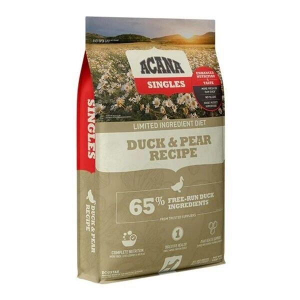 אקאנה כלב ברווז סנגלס 2 ק"ג מתאים במיוחד לכלבים שזקוקים למזון מלא לשגרה יומיומית, כלבים עם מערכת עיכול רגישה או העדפה לפורמולה עדינה יותר.