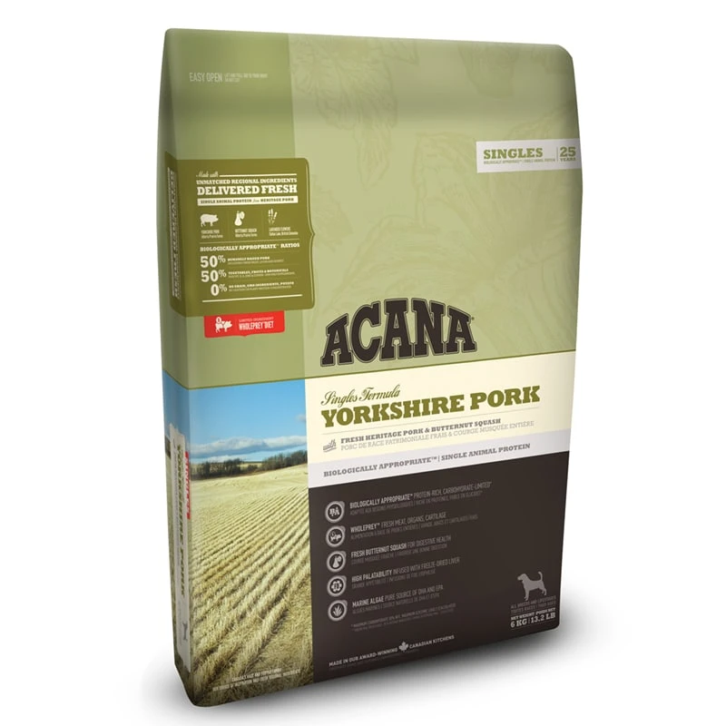 המזון היבש של ACANA מותאם ביולוגית להתפתחות האבולוציונית של כלבים ולאנטומיה של מערכת העיכול שלהם.המזון של אקאנה מיוצר מהרכיבים הטובים בעולם במטבחים אמיתיים ומהמתקדמים בענף כדי לשמור על הערכים התזונתיים של המזון ולספק לכלב שלכם את מה שהטבע יעד לו. אקאנה SINGLES הינה סידרת מזונות מותאמים ביולוגית המכילים רכיבים ממקור חלבון יחיד ומותאמת במיוחד עבוד כלבים רגישים, בכל שלב של חייהם.