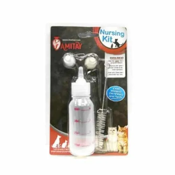 בקבוק הנקה לכלב ולחתולהבקבוק מגיע עם שתי פטמות ומקל לניקוי