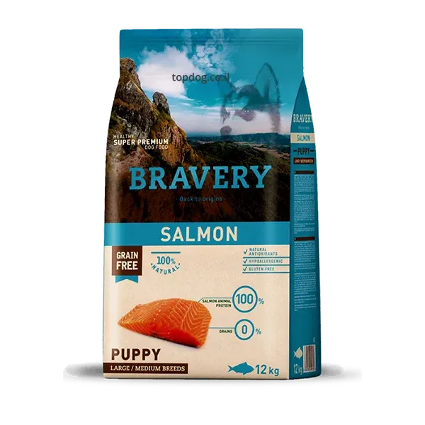 מזון היפואלרגני לגורים מגזע בינוני/גדול 12 ק"ג . ברייברי הוא מזון היפואלרגני מלא ללא דגנים, ללא גלוטן הוא מכיל בשר סלמון בלבד קל לעיכול. בעל טעימות גבוהה