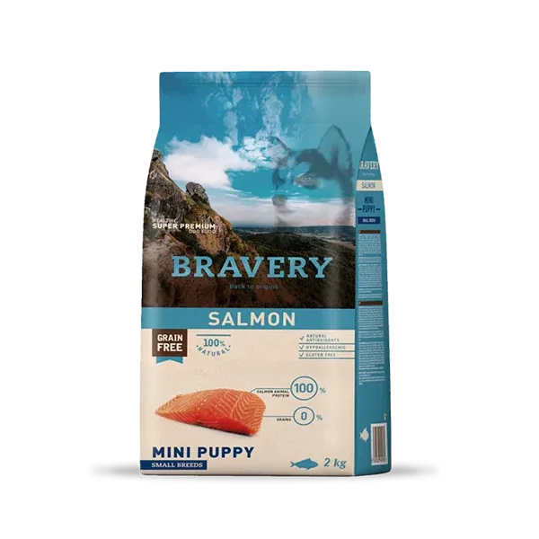 ברייברי סלמון לגורי כלבים הוא מזון מלא ואיכותי, סלמון הוא מרכיב בעל תכולת חלבון גבוהה, דל שומן וניתן לעיכול בקלות. שמן סלמון מסייע בשמירה על עור בריא ופרווה מבריקה.