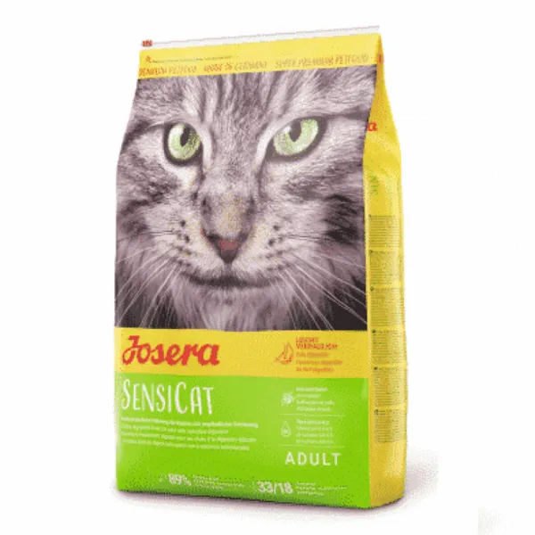 ג'וסרה סנסיקט ללמערכת עיכול רגישהמכיל רכיבים קלים לעיכולג'וסרה סנסיקט Josera SensiCat  מזון סופר פרימיום תוצרת גרמניה.הפורמולה המאוזנת היטב שלJOSERASensiCat עם מרכיבים איכותיים מבטיחה עיכול גבוה. אידיאלי לחתולים בוגרים וחתולים עם מערכת עיכול רגישה פורמולה מקובלת מאוד ומרכיבים קלים לעיכול מעודד ערך pH של 6.0-6.5 כדי להפחית את הסיכון להיווצרות אבנים בדרכי השתן. מכיל סיבים תזונתיים המפחיתים את היווצרות כדור השיער שמתאימים גם לחתלתולים מגיל 6 חודשים המעדיפים גודל גדול יותררכיבים:קמח בשר עוף,תירס,אורז,שומן מזוקק מן החי,שומן עוף,ציפת סלק סוכר,חלבון עוף שעבר הידרוליזה,גלוטן תירס,כבד עוף מיובש,מונוסודיום פוספט,אשלגן כלורי.ערכים תזונתיים באחוזים:חלבון 33% שומן 18% סיבים גולמיים 2% אפר גולמי 7.5% סידן 1.3% זרחן 1.2% מגנזיום 0.09% נתרן 0.4% אשלגן 0.6%