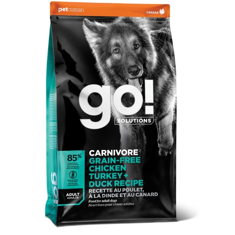 גו! קרניבור עוף, הודו וברווז – מתכון ללא דגנים המיועד לכלבים אוהבי בשר. מלא בחלבון מן החי לתמיכה בשרירים עם תוספת פרוביוטיקה העוזרת לעיכול. המתכון כולל 100% עוף טרי, הודו, פורל, ברווז וסלמון, קמח עוף, הודו, סלמון, ברווז ודגים איכותיים, פירות וירקות עם נוגדי חימצון לתמיכרה במערכת החיסונית, פרוביוטיקה וסיבים פרה-ביוטיים המשפרים את העיכול. 0% תוצרי לוואי, הורמוני גדילה, חומרים משמרים מלאכותיים, חיטה, תירס או סויהמתכון ללא דגנים וגלוטן.