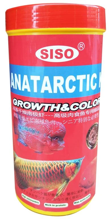הקריל מגיע ממים אנטארקטים ועובר הקפאה בווקום תחת תנאים סטריליים להרחקת מזהמים וללא תוספים. עשיר באומגה 3 ולכן מסייע בחיזוק מערכת החיסון של הדגים, מכיל חומרים לחיזוק צבעי הדג, אשר הדגים אינם יכולים לייצר בעצמם. טעימות ונעכלות גבוהה, צורתו אינה שורטת את קיבת הדג. מתאים לדגים בינוניים, ארואנה, flower horn, תוכי ועוד.. הערה: המוצר פריך מאד ולכן עלולה להווצר כמות תקינה של אבקה. 500 מ"ל תכולה תזונתית באחוזים: חלבון גולמי:60, שומן גולמי:9, תאית:3 לחות: 3, astaxanthin: 2.5 אבץ: 48.8 מ"ג ברזל: 9.3 מ"ג, סידן: 2838.5 מ"ג, רכיבים: קריל אנטארקטי מיובש בהקפאה.