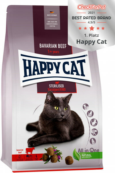 Happy Cat Sterilized Voralpen- Rind 10kg מזון יבש מלא לחתולים בוגרים הסובלים מעודף משקל , לחתולים מסורסים וחתולות מעוקרות, רק עם 10.5% שומן. מזון עשוי מבשר בקר ועוף טעים, עשיר בסיביים תזונתיים המווסתים את תחושת התיאבון, ממלאים וגורמים לתחושת השובע. חתולים מסורסים לעיתים קרובות עולים במשקל ביתר קלות מאשר חיות מחמד שאינן מסורסות. הורמונים בגוף גורמים לשינויים מטבוליים לאחר סירוס, ולכן לעתים קרובות חתולים נעשים רגועים בהרבה. עם זאת, עדיין יש להם תיאבון טוב והם יכולים לעלות במשקל מאד עד להשמנת יתר. הקילו הנוסף הזה הוא לא רק "פגם קל". עודף משקל מעלה את הסיכון לסוכרת, אבנים בדרכי השתן ומחלות אחרות. איכות החיים של החתול ואפילו תוחלת החיים יכולה להיות פחותה בהרבה כתוצאה מכך. תזונה עשירה בסיבים ומשביעה עם אחוז שומן בינוני מומלצת למניעת משקל עודף ותוצאותיו. המזון האידיאלי מכיל הרבה חלבונים כדי לעורר פעילות ותכולת מינרלים שנוסחה במיוחד כדי להגן על דרכי השתן. מזון זה עשוי מבשר בוואריה המותאם במיוחד לחתולים בוגרים מעוקרים ורגישים הנוטים לעלות במשקל. מזון זה מזין ואיכותי ומומלץ לשימוש בפרט לאחר סירוס או עיקור. הדיאטה השלמה הטעימה מכילה רק 10.5% שומן, אך עדיין יש בה חלק גבוה של חלבונים הניתנים לעיכול מבשר בקר ועוף. המתכון דל הקלוריות מבטיח כי חיית המחמד שלכם לא תעלה במשקל למרות פעילות גופנית מופחתת, ובכל זאת תחוש שובע. המתכון העדין מיוצר ללא דגים. תוצרת: גרמניה