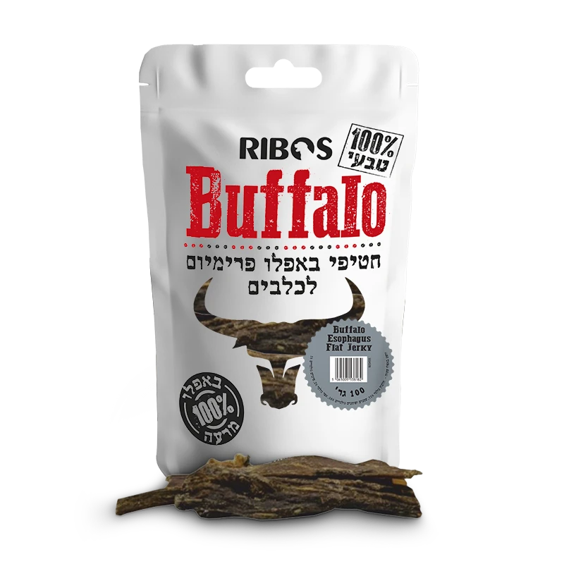 100% טבעי- עשוי מבאפלו מרעה ללא הורמוני גדילה. ללא חומרים משמרים, תוספים וצבעי מאכל מקור טבעי לאומגה 3, עשיר בברזל וויטמני B, מופחת שומן ומסייע לבריאות השן.