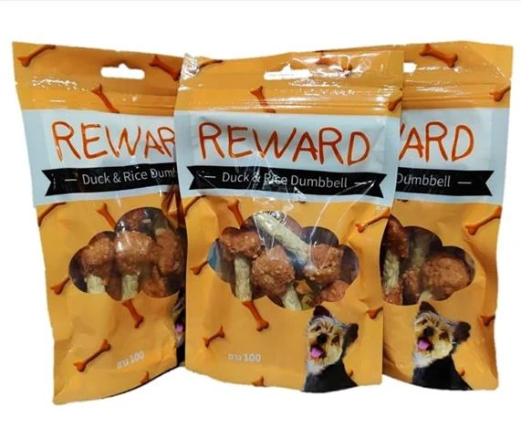 חטיף לכלב, אריזת 100 גרם (16908) תכולה תזונתית באחוזים :חלבון גולמי: 30%,שומן גולמי: 3%, סיבים גולמיים: 1.5% אפר גולמי: 4% , לחות: 25% . רכיבים :ברווז, אורז, עמילן תפוח אדמה, סורביטול, גליצרין.