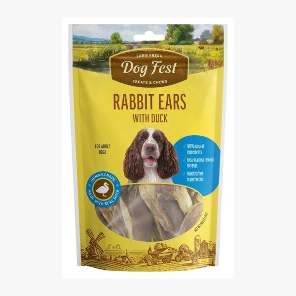 חטיף דוג פסט לכלב אזני ארנב במילוי ברווז 90 גרם מתאים במיוחד למי שמחפש חטיף למכרסמים שקל לשלב כפינוק או תגמול בשגרה.