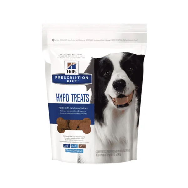 חטיף היפואלרגני לכלב הילס 340 גרם – HILLS HYPOחטיף היפואלרגני לכלב 340 גרם -משלים ואינו מזון עיקרי. Prescription Diet Hypoallergenic Z/D D/D I/D Treats מבית הילסHILLS. חטיף ביסקוויט / עוגיה היפואלרגניים מיועדות לכלבים הסובלים מתסמיני עור (גירוד פצעים והתקרחות) ותסמיני מערכת העיכול (שלשול, הקאות) הנגרמים מרגישות יתר למזון. מומלץ להתייעץ עם וטרינר לפני רכישת החטיף.