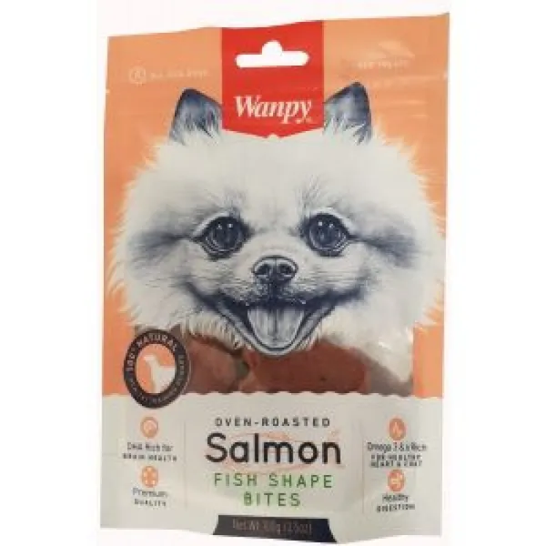 חטיף וונפי מקלות סלמון – WANPYטעים, לעיס, מתעכל בקלות ואידיאלי לאימונים עם כלבך או כתגמול טוב אחרי טיולים או בין ארוחות. מכיל סלמון, עוף, חלבון צמחי, גליצרין, עמילן.