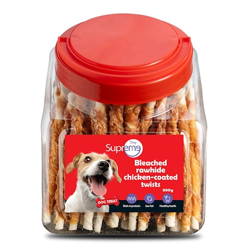 חטיף טוויסט עור מצופה עוף 900 גרם הוא הפינוק המושלם לחיית המחמד שלך. מעניק להם תענוג טעים ומשחק מהנה ללעיסה.