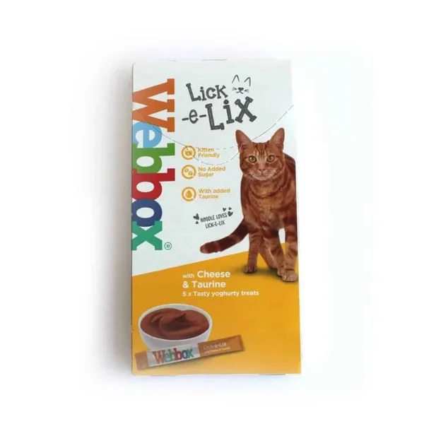 חטיף לחתול וויבוקס ליקוקים בטעם גבינה וטאורין Webbox Lick Lix Cheese&Taurine  flavor cat treat5 יחידות במארז 15 גרם ליחידהמתאים גם לגורים.ללא תוספת סוכר.