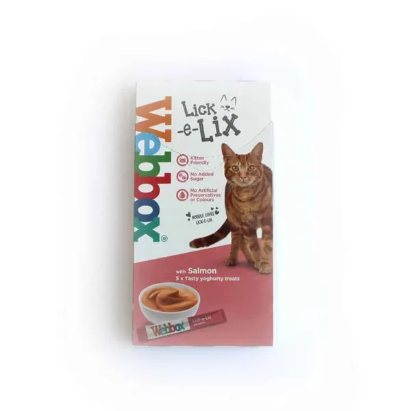 חטיף לחתול וויבוקס ליקוקים בטעם סלמון Webbox Lick Lix Salmon flavor cat treat5 יחידות במארז 15 גרם ליחידהמתאים גם לגורים.ללא תוספת סוכר.