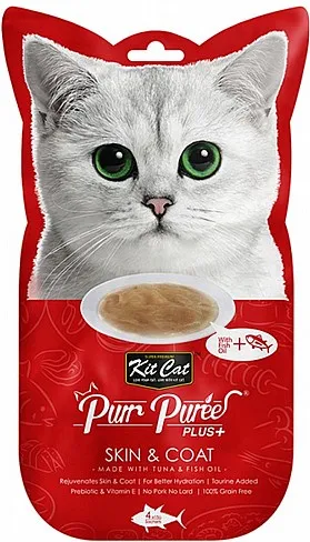 חטיף מעדן קיט קט פלוס לבעיות עור ופרווה טונה ושמן דגיםתכולה: 60 גרם, מגיע ב-4 שלוקרים של 15 גרם.