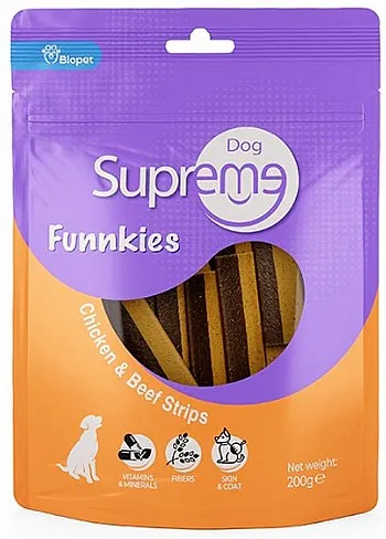 חטיף לכלב סופרים שטוח עוף ובקרחטיף רצועות רך לכלב – מזון משלים בטעם עוף ובקר , מתאים לכלבים מגזע בינוני וגדול.
