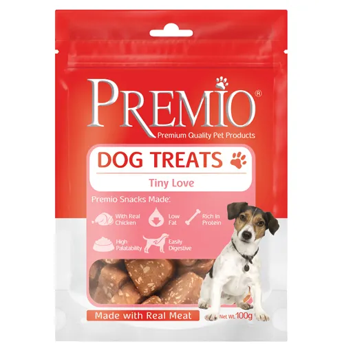 חטיף רך לכלבים פרמיו בצורת לבבות עם עוף 100 גרם.