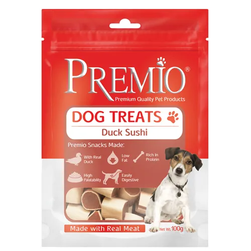 חטיף רך פרמיו לכלבים בצורת סושי עם ברווז 100 גרם.