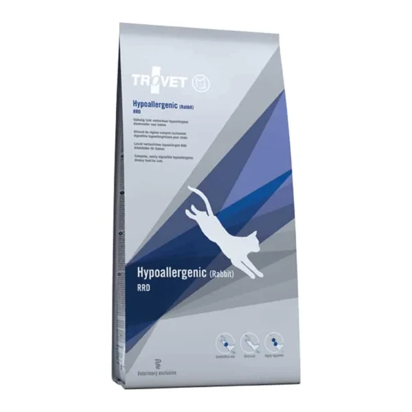 טרווט היפואלרגני (ארנבת) הנו מזון ייעודי, יבש, מלא קל לעיכול לחתולים בוגרים. התוויה תזונתית ספציפית: הפחתה של אי סבילות למרכיבים ונוטריאנטים. מאפיינים תזונתיים חיוניים: מקור מובחר של חלבון (ארנבת) ופחמימות (אורז), רמה גבוהה של חומצות שומן חיוניות. הוראות האכלה: יש לחלק את המנה היומית המומלצת למספר ארוחות ביום. המוצר מוכן לאכילה. יש לספק מים באופן קבוע. משך האכלה מומלץ: 3 עד 8 שבועות. אם הסימנים של אי סבילות נעלמים ניתן להשתמש במזון זה ללא הגבלת זמן. מומלץ להתייעץ עם וטרינר לפני השימוש. יש לסגור היטב את האריזה לאחר השימוש. לשמור במקום קריר ויבש. לא למאכל אדם.