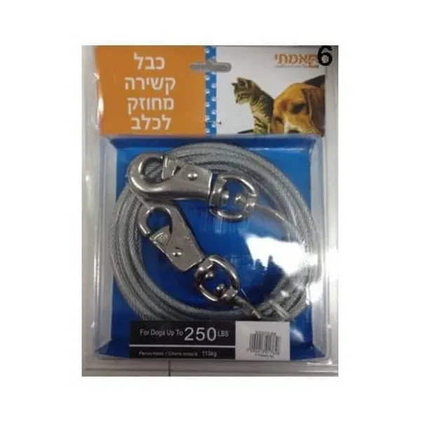 כבל קשירה עבה לכלבכבל קשירה לכלב ממתכת עטוף בפלסטיק להגנה.