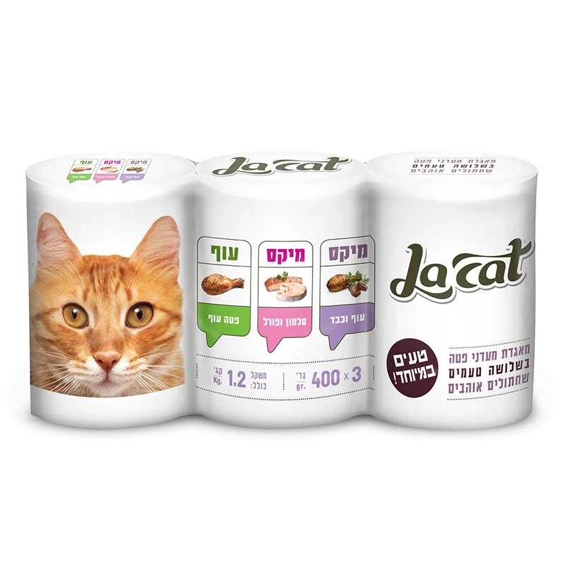 שלישיית מעדני בשר משובח במרקם פטה-בטעמים: עוף, כבד עוף , ומיקס סלמון פורל.מיוצר מבשר אמיתי ,במרקם פטה עדין, רך וטעים. ללא צבעי מאכל.מיועד לכל סוגי החתולים בכל הגילאים כמזון משלים.