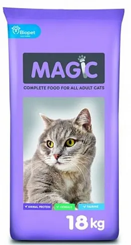 מג'יק מזון יבש לחתול 18 ק"גמזון יבש מלא לחתולים בוגריםמכיל בקר, ויטמינים ומינראלים המספקים תזונה מלאה לחתולים.מגיע באריזת חיסכון במשקל 18 קג