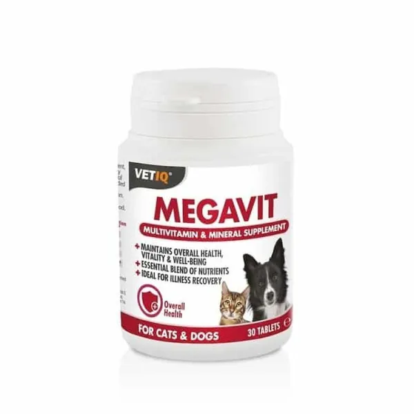 מולטי ויטמין VETIQ30 טבליותאיכותי המכיל תערובת עשירה של ויטמינים ומינרלים. מתאים במיוחד לכלבים וחתולים מבוגרים או אחרי מחלה. מסייע בתהליכי עיכול תקינים וכן מסייע בשיקום הפרווה.