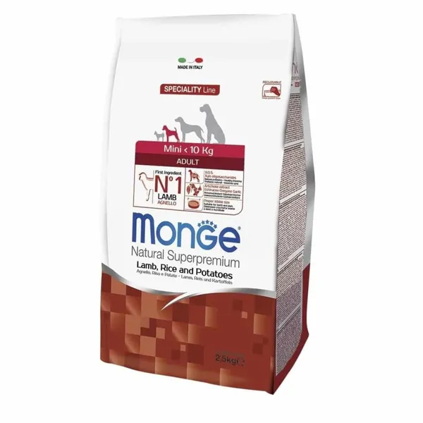 מזון סופר פרימיום טבעי יבש מלא של מונג׳ לכלבים בוגרים מגזעים זעירים – כבש, אורז ותפוחי אדמה 2.5 ק"גקבוצת Monge היא יצרנית מזון לחתולים וכלבים הגדולה באיטליה. בית החרושת למזון לחיות מחמד במונסטרולו די סוויגליאנו, במחוז קוניאו האיטלקי, מאכלס את כל המחלקות: ייצור, בקרת איכות, מחקר ופיתוח, לוגיסטיקה, שיווק ופונקציות במשרד הראשי. צוות של 300 אנשי מקצוע ו -120 נציגי מכירות מבטיחים את רמת השירות הגבוהה ביותר, שנה אחר שנה. מה שהחברה הפכה אליו הוא עדות יוצאת דופן לחזונה של משפחת מונג 'ולעבודה הקשה של כל מי שעובד עבורם.איכות – סביבה – אנרגיה – בטיחות מזון המשימה של מונג'ה היא לכבד את ההקשר העסקי של מוצרים בכל הנוגע להגנה על מוצרים, הגנה על עקרונות הבריאות והבטיחות של העובדים שלנו והסביבה והאנרגיה. ניהול מונג מזוהה במדיניות המשולבת, הכלי העיקרי לניהול מערכת ניהול איכות, אבטחה, סביבה ואנרגיה במטרה לשפר ביצועים מתמשכים. • הבטחת רווחת העיכול של כלבים וחתולים עם מוצרים המתאימים לצרכיהם. • היצע מוצרים בהתאמה אישית, המתאימים בכל שלבי גידול חיית המחמד • ייצור מזון לחיות מחמד בסטנדרטים תזונתיים איכותיים • יישום סטנדרטים גבוהים של בקרה על המוצרים החל מקבלת חומר הגלם ועד לעיבוד פנימי ועד לאספקה הסופית. • מחקר ופיתוח מתמשך של מוצר חדש. • שקיפות עם הצרכןרכיבים: בשר כבש (טרי 10% , מיובש 30% ), אורז, תירס, עיסת סלק סוכר, גלוטן התירס, שמרי בירה (מקור ל- MOS וויטמין B12 ) חלבון מן החי שעבר הידרוליזה, שומן מן החי ( 99.6% שומן עוף מיוצב בסיוע נוגדי חימצון טבעיים), שיבולת שועל (מקור לסיבים אצילים), יוקה, ספירולינה, סחוס ממקור מימי (מקור לכונדרטין גופרתני), סרטנים (מקור לגלוקוזמין), XOS (קסילו אוליגו סכרידים 3 ג/ק״ג), שמרים שעברו הידרוליזה ( MOS ), מתילסולפנו מתאין,שורש אכיניצאה, אורגנו, אבקת שום מיובש.תכולה תזונתית של ויטמינים ומינרלים: ויטמין 23,000 A יב"ל/ק"ג, ויטמין 1600 D3 יב"ל/ק"ג, ויטמין 200 E מ"ג, ויטמין 10 B1 מ"ג , ויטמין 13 B2 מ"ג, ויטמין 6 B6 מ"ג, ויטמין 125 B12 מ"ג, ביוטין 17 מ״ג, ניאצין 26 מ״ג, ויטמין 180 C מ״ג, חומצה פנטטונית 15 מ״ג, חומצה פולית 1.4 מ״ג, כולין כלורידי 2,500 מ״ג, אינוסיטול 3.0 מ״ג, E5 מנגן סולפט מונוהידראט 35 מ״ג, E6 תחמוצת אבץ 160 מ״ג, E4 נחושת גפריתנית פנטההידראט 13 מ״ג, E1 ברזל גופרתני מונוהידרט 110 מ"ג, E8 סלנייט הנתרן 0.22 מ״ג, E2 סידן 1.8 מ״ג, אל קרניטין 105 מ״ג, די אל מתאונין מטוהר 7.30 גר׳. תוספים טכנולוגיים: תערובת טבעית של שומנים מהצומח ותמצית מצמח הרוזמרין. תוספות אורגנולפטיות: תמצית אגוזי לוז 20 מ״ג, תמצית ארטישוק 300 מ״ג. אנרגיה (קק״ל): 4,130 .