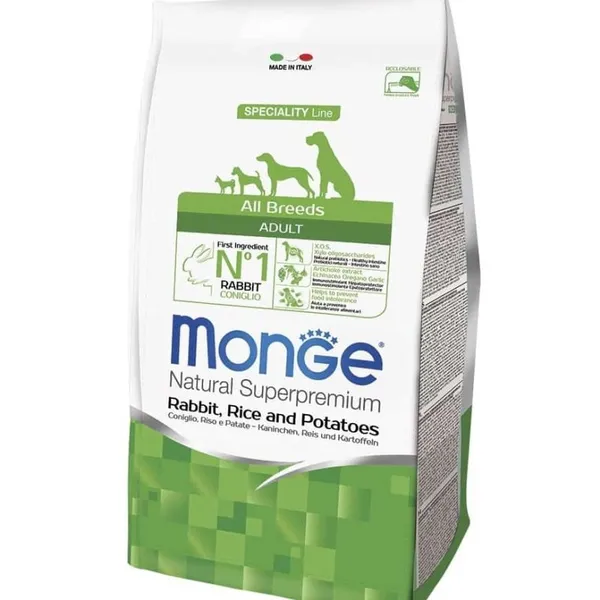 מזון סופר פרימיום טבעי יבש מלא של מונג׳ לכלבים בוגרים מכל הגזעים – ארנבת, אורז ותפוחי אדמהקבוצת Monge היא יצרנית מזון לחתולים וכלבים הגדולה באיטליה. בית החרושת למזון לחיות מחמד במונסטרולו די סוויגליאנו, במחוז קוניאו האיטלקי, מאכלס את כל המחלקות: ייצור, בקרת איכות, מחקר ופיתוח, לוגיסטיקה, שיווק ופונקציות במשרד הראשי. צוות של 300 אנשי מקצוע ו -120 נציגי מכירות מבטיחים את רמת השירות הגבוהה ביותר, שנה אחר שנה. מה שהחברה הפכה אליו הוא עדות יוצאת דופן לחזונה של משפחת מונג 'ולעבודה הקשה של כל מי שעובד עבורם.איכות – סביבה – אנרגיה – בטיחות מזון המשימה של מונג'ה היא לכבד את ההקשר העסקי של מוצרים בכל הנוגע להגנה על מוצרים, הגנה על עקרונות הבריאות והבטיחות של העובדים שלנו והסביבה והאנרגיה. ניהול מונג מזוהה במדיניות המשולבת, הכלי העיקרי לניהול מערכת ניהול איכות, אבטחה, סביבה ואנרגיה במטרה לשפר ביצועים מתמשכים. • הבטחת רווחת העיכול של כלבים וחתולים עם מוצרים המתאימים לצרכיהם. • היצע מוצרים בהתאמה אישית, המתאימים בכל שלבי גידול חיית המחמד • ייצור מזון לחיות מחמד בסטנדרטים תזונתיים איכותיים • יישום סטנדרטים גבוהים של בקרה על המוצרים החל מקבלת חומר הגלם ועד לעיבוד פנימי ועד לאספקה הסופית. • מחקר ופיתוח מתמשך של מוצר חדש. • שקיפות עם הצרכןרכיבים: ארנבת (טרי 10% , מיובש 23% ), אורז, תמצית חלבון תפו״א, תירס, עיסת סלק, שמרי בירה (מקור ל- MOS וויטמין B12 ), חלבון מיובש מן החי, שומן מן החי ( 99.6% שומן עוף מיוצב בסיוע נוגדי חימצון טבעיים), סחוס ממקור מימי (מקור לכונדרטין גופרתני), סרטנים (מקור לגלוקוזמין), מתיל־ סולפנו מתאין, XOS (קסילו אוליגו סכרידים 3 ג/ק״ג), שמרים שעברו הידרוליזה ( MOS ), יוקה, ספירולינה, שורש אכיניצאה, אורגנו, אבקת שום מיובש. תכולה תזונתית באחוזים: חלבון כללי 26% , שמנים ושומנים 15% , תאית 2.5% , אפר 7.00% , סידן 1.70% , זרחן 1.10% , אומגה 6 (חומצות שומן חיוניות) 3.50% , אומגה 3 (חומצות שומן חיוניות) 0.55% .תכולה תזונתית של ויטמינים ומינרלים: ויטמין 24,000 A יב"ל/ק"ג, ויטמין 1700 D3 יב"ל/ק"ג, ויטמין 190 E מ"ג, ויטמין 12 B1 מ"ג , ויטמין 15 B2 מ"ג, ויטמין 7.00 B6 מ"ג, ויטמין 150 B12 מ"ג, ביוטין 20 מ״ג, ניאצין 30 מ״ג, ויטמין 200 C מ״ג, חומצה פנטטונית 18 מ״ג, חומצה פולית 1.7 מ״ג, כולין כלורידי 2,500 מ״ג, אינוסיטול 3.60 מ״ג, E5 מנגן סולפט מונוהידראט 32 מ״ג, E6 תחמוצת אבץ 150 מ״ג, E4 נחושת גפריתנית פנטההידראט 13 מ״ג, E1 ברזל גופרתני מונוהידרט 110 מ"ג, E8 סלנייט הנתרן 0.20 מ״ג, E2 סידן 1.8 מ״ג, אל קרניטין 100 מ״ג, די אל מתיונין מטוהר 1.6 גר׳. תוספים טכנולוגיים: תערובת טבעית של שומנים מהצומח ותמצית מצמח הרוזמרין. תוספות אורגנולפטיות: תמצית אגוזי לוז 20 מ״ג, תמצית ארטישוק 300 מ״ג. אנרגיה (קק״ל): 4,070 .