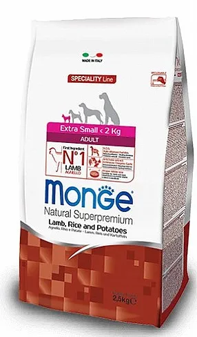מונג' כלב בוגר מגזע זעיר XS כבש, אורז ותפו"א 2.5 ק"ג