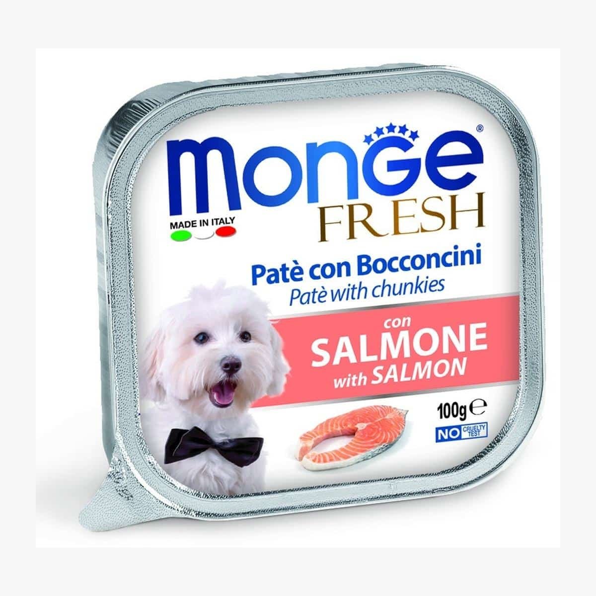 למה לבחור במונג פרש לכלב פטה עם נתחי סלמון 100 גרם?