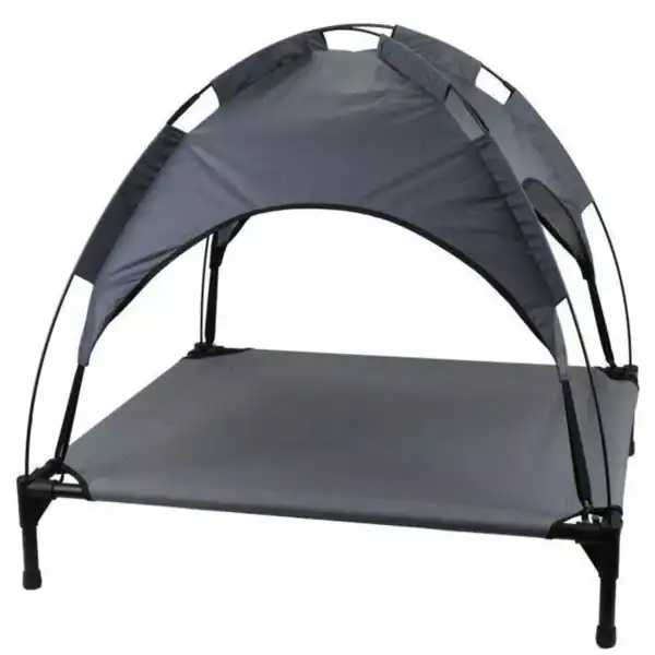 מיטת טרמפולינה מוגבהת לכלב, ניתן להוסיף גג נגד גשם ושמש (הרכבה קלילה) גודל: 76X61 סנטימטר גובה: 75 סנטימטר המיטה מקלה על הלחץ על המפרקים והשרירים בזמן רביצה. קלה לניקוי ואיכותית. קל לניקוי מתחת ומסביב לטרמפולינה