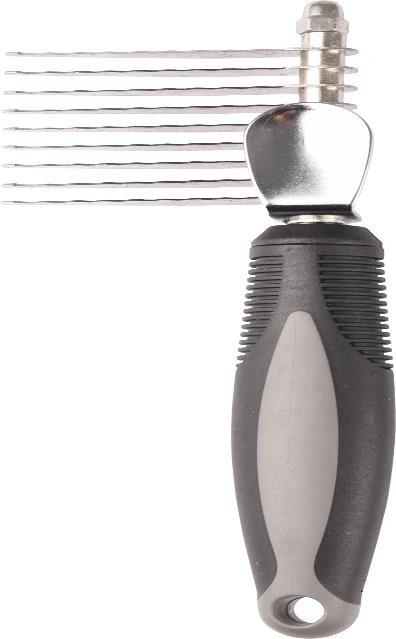 מסרק הכלב הזה הוא הכלי המושלם להסרת קשרים. עם 9 שיניים ופונקציית חיתוך, זה מהיר ויעיל. עם זאת, יש להיזהר והגן על עור הכלב. מתאים לכלבים עם פרווה ארוכה בלבד.