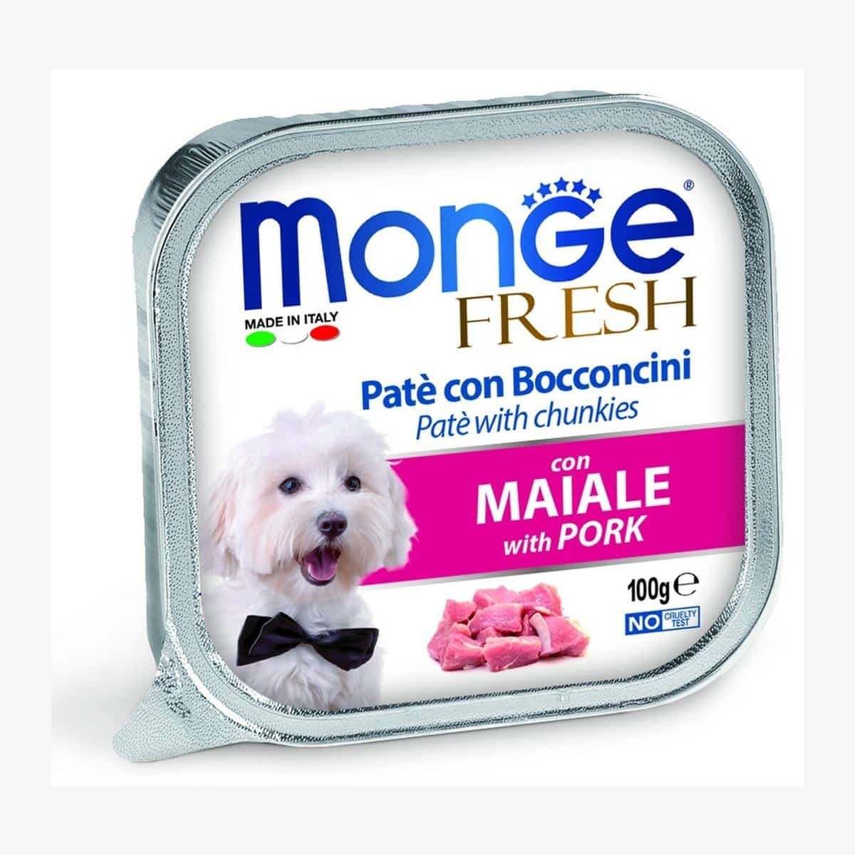 מעדן מונג פרש לכלב פטה חזיר 100 גרם מתאים במיוחד לכלבים שזקוקים למזון מלא לשגרה יומיומית, כלבים עם מערכת עיכול רגישה או העדפה לפורמולה עדינה יותר, כלבים בררנים שמגיבים טוב יותר לפורמולה עם טעימות נעימה יותר.