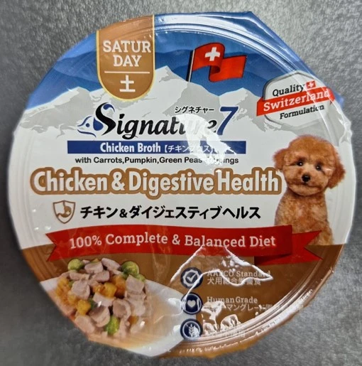 מעדן 7 SIGNATURE לכלב, 100% מזון מלא ומאוזן לכלב. בטעם עוף ומכיל גם גזר ,דלעת ואפונה ירוקה מעולה לשמירה אל המשקל.