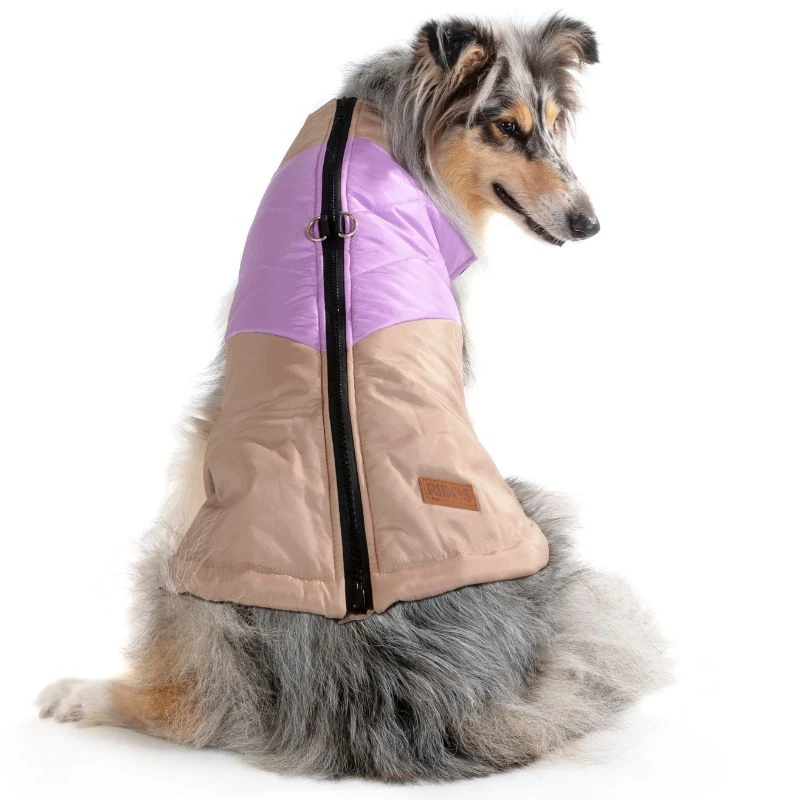 מעיל ריבוס ספורטיבי סגול-בז' מביא את שיא האופנה לעולם הכלבים. העיצוב הספורטיבי והצבעים העזים מלאי סטייל ומושכים את העין, בעוד הבד הנוח והסגירה הקלה מבטיחים שימוש נעים. מושלם לטיולים בכל מזג אוויר.