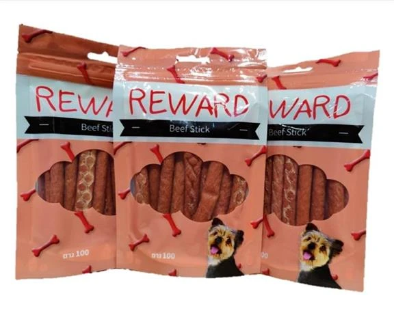 חטיף לכלב, אריזת 100 גרם (16911) תכולה תזונתית באחוזים :חלבון גולמי: 40%,שומן גולמי: 8%, סיבים גולמיים: 3% אפר גולמי: 3% , לחות: 23% . רכיבים : בקר , מוצרים מבקר, חלבון צמחי, גליצרין, סורביטול, מלח.