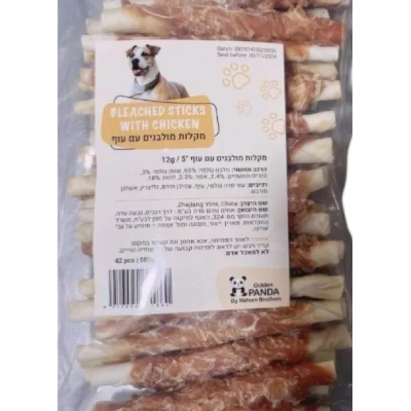 מקלות מולבנות עם עוף 500 גרם, 42 יחידות.מתאים לכל הגזעים .מתאים לפינוק, , להעסקה וכפרס על התנהגות טובה .