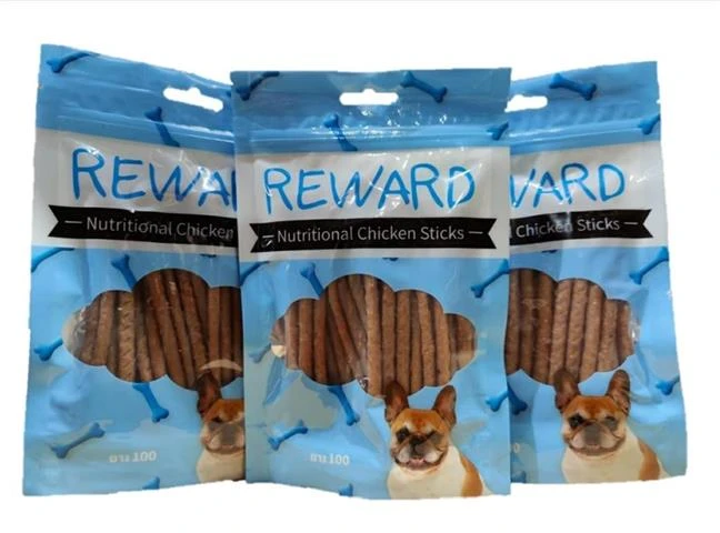חטיף לכלב, אריזת 100 גרם (16913) תכולה תזונתית באחוזים :חלבון גולמי: 30%,שומן גולמי: 4%, סיבים גולמיים: 1% אפר גולמי: 3% , לחות: 23% . רכיבים : עוף , חלבון אפונה, גליצרין, סורביטול.