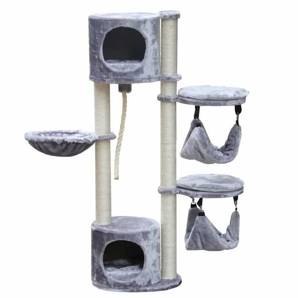 מתקן גירוד בצבע אפור מידה 40*40*120מתקן גירוד יוקרתי לחתול של חברת פטקס ,מותאם להשחזת ציפורני החתול, מצוין לשימוש כמקום משחק או כמקום מסתור עבור החתול שלך דגם PS496