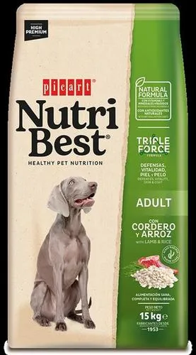 נוטרי בסט Nutribest – מזון יבש לכלבים בוגרים פעיליםמזון המיועד לכלבים הפעילים גופנית או חיים באקלים קר הדורשים דיאטה עם רמות גבוהות יותר של חלבון ואנרגיה.מזון זה מסייע להם להגביר את ההתנגדות הפיזית שלהם ומגן עליהם מפני פגיעות אפשריות או עייפות מופרזת.אוכל לכלבים עם כבש ואורז לכלבים בוגרים מגזעים בינוניים וגדולים. אלטרנטיבה לתזונה ללא בשר עוף, שימושי למקרים של רגישות למזון לחלבוןזה.  נוטריבסט כבש ואורז Nutribest הוא מזון פרימיום שגובש על ידי הווטרינרים ומומחי התזונה שלנו בכדי לעזור לכלבים לגדול עם בריאותוחיוניות ברזל מכיל אצות צפון אטלנטיות לשמירה על בריאות העור ופרווה  הגנות: – ויטמינים A ו- E, יחד עם יסודות קורט נחושת וסלניום,חיוניים למערכת חיסונית חזקה. בריאות הנפש: אומגות 6 ו -9, המופקות משמן דגים, מעוררות למידה והתפתחות של תפקודי מוח שונים.בריאות עור ושיער: – כולל אצות, מקור עשיר של מינרלים טבעיים, יסודות קורט, ויטמינים וחומצות אמינו. מזין ומעניק לחות לעור, מגן על התאיםושומר על איכות פרווה חזקה ומבריקה.