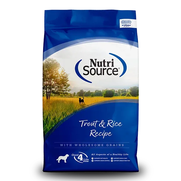 נוטרי סורס פורל ואורז מתכון מזון לכלבים מיועד לעמוד ברמות התזונתיות שנקבעו על ידי איגוד פקידי בקרת הזנה האמריקאית (AAFCO)נוסחאות הכוללות דגנים של NutriSource מספקות תזונה מרוכזת וכוללות פרה-ביוטיקה ופרוביוטיקה כדי לסייע בתמיכה במעיים בריאים. חומצות שומן מאוזנות אומגה 3 ואומגה 6, יחד עם L-Carnitine, טאורין, כולין כלוריד ותוספי מתיונין DL לקידום בריאות הלב.פורל הוא המרכיב מספר 1.