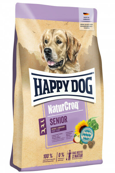 Happy Dog NaturCroq Senior 4kg מזון יבש מלא לכלבים מבוגרים. עם תכולה נמוכה של חלבון, סודיום ופוספורוס. מתכון עם חלבון איכותי מן החי וויטמין C, ללא סויה, צבעי מאכל או חומרים משמרים, עם עשבי תיבול לגדילה טובה, חומצות שומן אומגה 6 ו- 3. מכיל 21% חלבון ו- 8% שומן. תוצרת: גרמניה