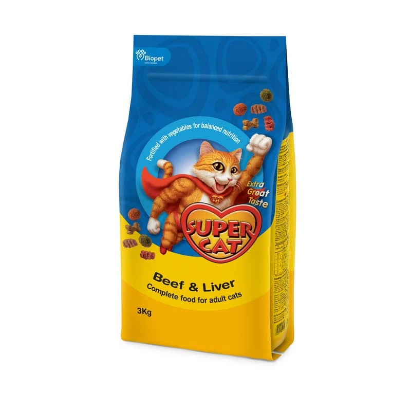 Super Cat בקר וכבד הינו מזון בשרי, טעים במיוחד, מלא ומאוזן לחתולים הממלא 100% מדרישות התזונה היומית של חתולים בוגרים. Super Cat בקר וכבד מכיל ויטמינים ומינרלים חיוניים, שילוב של ויטמין E וסלניום להאטת תהליך ההזדקנות.