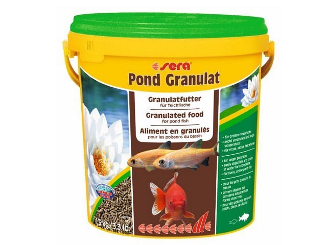 (Sera Pond Granulat 10 l (1.5kg סרה ביוגרנולט הינו מזון מגורען המתאים לדגי בריכה גדולים ובינונים. הגרגרים צפים, שומרים על צורתם ולא מזהמים את המים. תוצרת: גרמניה