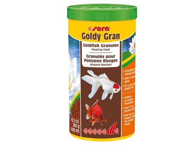 Sera Goldy Gran 1000ml(320g) סרה גולדי גראן – הינו מזון מגורען, צף, להאכלה יומיומית לדגי זהב, קוי ודגי מים קרים אחרים. תוצר: גרמניה