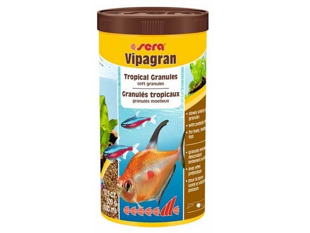 (Sera Vipagran 1000 ml(300g מזון בסיס מלא מגרגירים רכים עם ארוחת חרקים – כמקור חלבון איכותי המהווה חסכון במשאבים. חברת סרה השיקה סדרה חדשה הנקראת סרה טבע Sera Nature, והתאימה את סרה ויפאגרן לסדרה הטבעית החדשה. מזונות מבוססי הגרונולות(גרגירים) ומזונות בסיסים, עברו מודרניזציה בייצור ותפוקה. מוצרים ללא צבעי מאכל, ללא חומרים משמרים, ועשויים ממרכיבים טבעיים. הצבעים הינם גרידא רכיבים טבעיים. ליבת המזון חולצה בעדינות יתרה, בטמפרטורה נמוכה, לפי הדרישות הנדרשות, ושופעת בוויטמינים ומינרלים נחוצים, ובאצות המחזקות התנגדות למחלות ומאריכות את חיי הדג. תוצרת: גרמניה